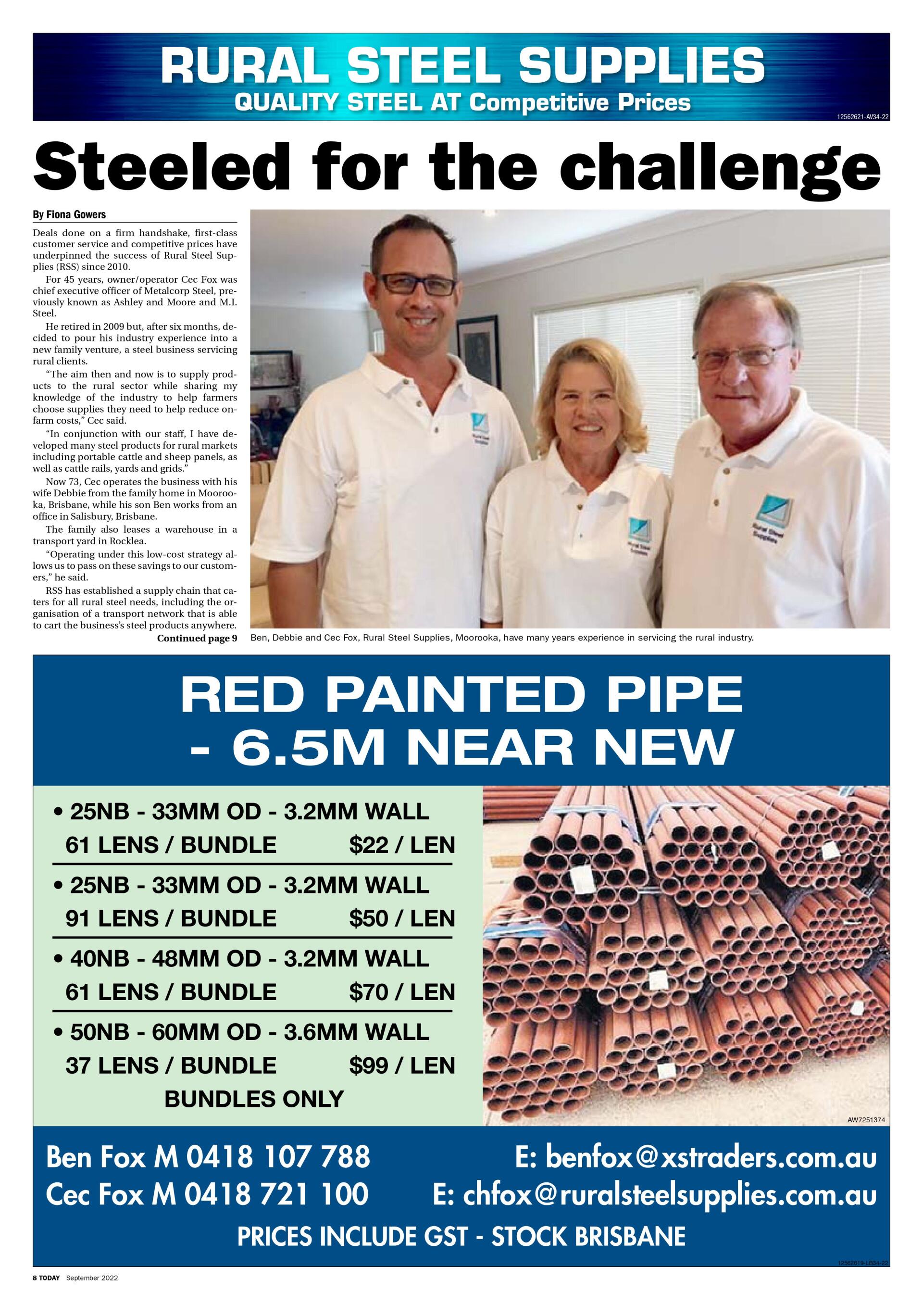 - Developed a very large Rural Steel Business in QLD, NSW and VIC