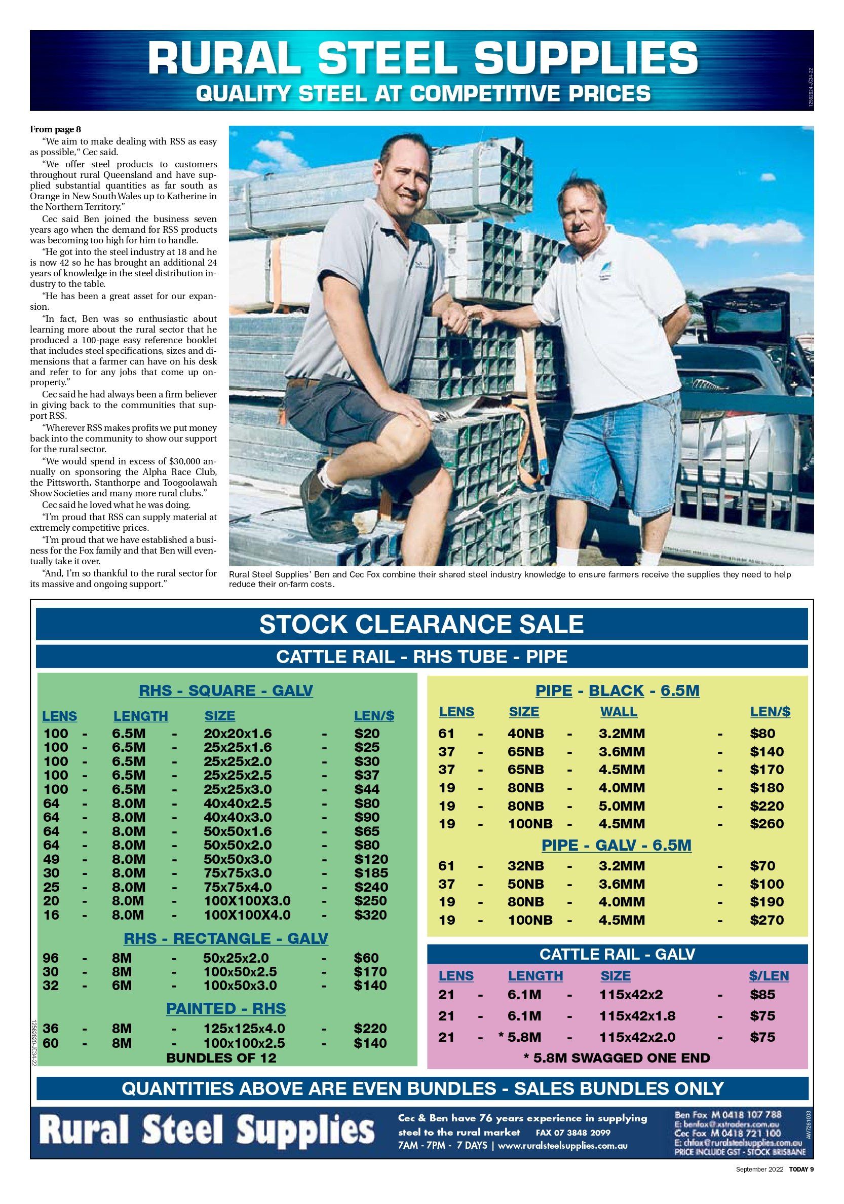 Cec Fox is the founder and director of Rural Steel Supplies. He is based in Brisbane and has more than 50 years of experience as a General Manager and Executive Director in a number of organisations throughout the steel industry. He is responsible for all steel sales and client relationships with Rural Steel Supplies. Ben Fox joined Rural Steel Supplies 5 years ago. Ben has 25 years experience in the steel distribution industry and is a great asset for the expansion of rural steel supplies